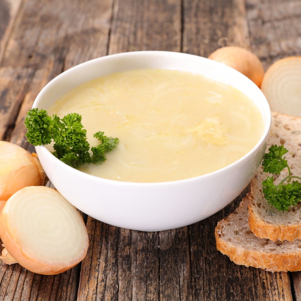 Heerlijk geurige uiensoep met een krokant kaasbootje . Warm, romig en perfect voor een gezellige maaltijd.